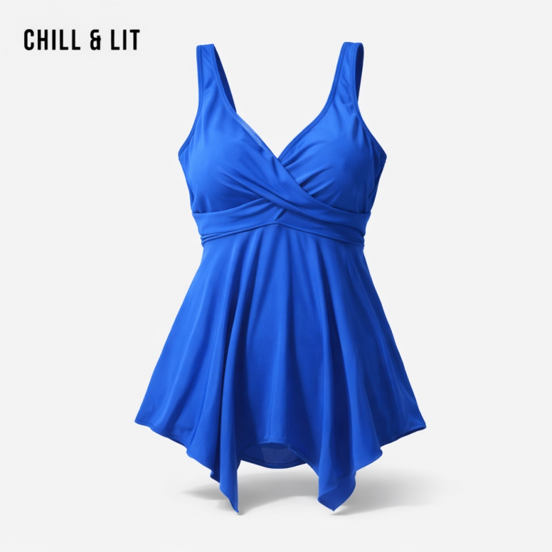 Maillot de Bain Femme Tankini 2 Pièces à Décolleté Arrondie avec Haut Ample Bandeau et Bretelles Réglables de Largeur Moyen Très Tendance cet été. Culotte à Couverture Moyenne. Tissu à Séchage Rapide. La Taille sur La Photo M.