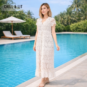 Cache Maillot en Crochet Femme Hyper Tendance en Ligne sur Chill&Lit. Le Mannequin Porte La Taille Standard.