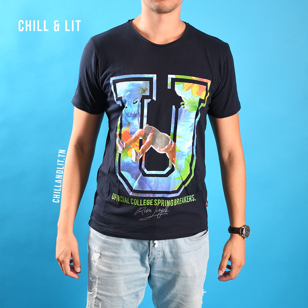 Chill&Lit Vous Propose un T-Shirt Graphique Homme Coton. Le Mannequin Porte La Taille L.