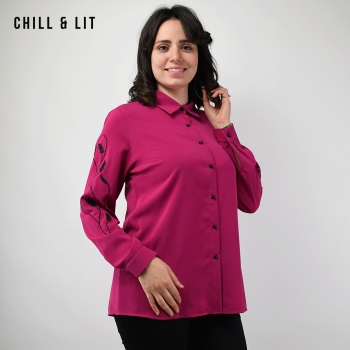Chemise Femme Manches Longues Très Tendance en Ce Moment. Le Mannequin Porte La Taille 40. Le Mannequin Mesure 1m78.