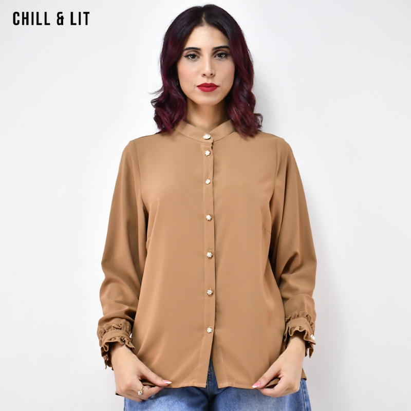 Chemise Femme Manches Longues Très Tendance en Ce Moment. Le Mannequin Porte La Taille 38. Le Mannequin Mesure 1m78.