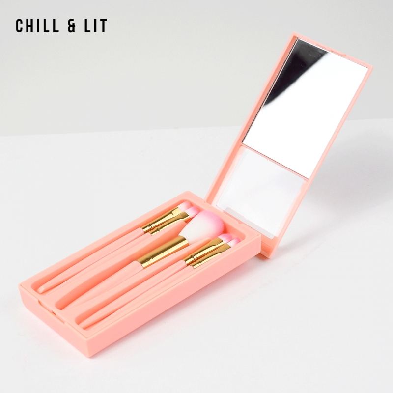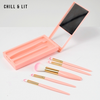5 pinceaux cosmétiques essentiels dans un petit étui, comprenant un pinceau à détail, un pinceau à ombre à paupières, un pinceau à poudre libre, un pinceau à ombre à paupières et un pinceau à estomper. Et l'étui de rangement est si pratique avec le miroir à l'intérieur, tout est suffisant pour vous aider à obtenir un look complet.