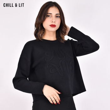 Pull Court à Broderie Bouffante Femme en Laine, Avec Col Rond, Manches Longues Hyper Tendance en ce Moment. Le Mannequin Porte La Taille Standard. 35% Viscose 17.5% Polyamide 22% Coton 10% Laine 15.5% Polyester