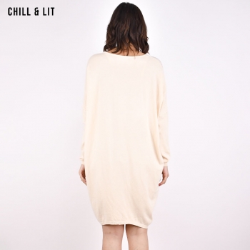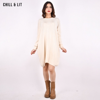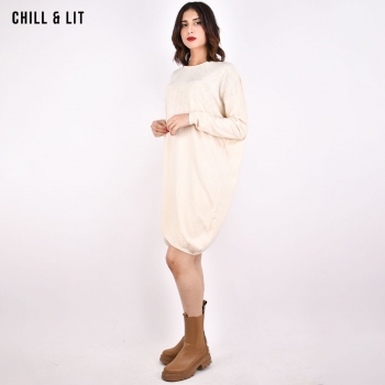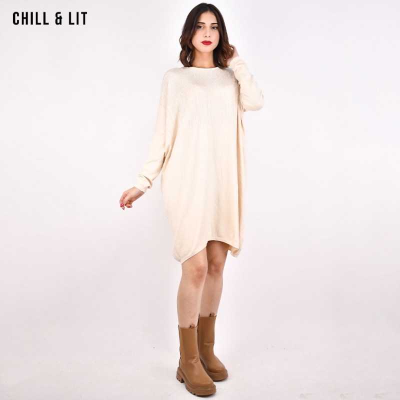 Robe Courte Femme en Laine à Strass, Avec Col Rond, Manches Longues Hyper Tendance en ce Moment. Le Mannequin Porte La Taille Standard.