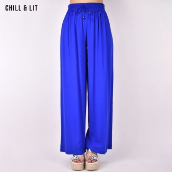 Pantalon Large Taille Haute Ajustable à La Taille avec Cordant Super Tendances cette Saison. Le Mannequin Porte La Taille 1 et Mesure 1m75.