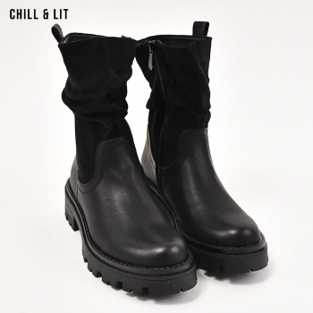 Bottines en Cuir pour Femme avec Doublure Ultra Chaude et Douce, Fermeture Glissière, Tige à Hauteur 23 Cm et Semelle Hauteur 4,5 Cm Tendance cet Hiver. Pointure sur la photo : 36.