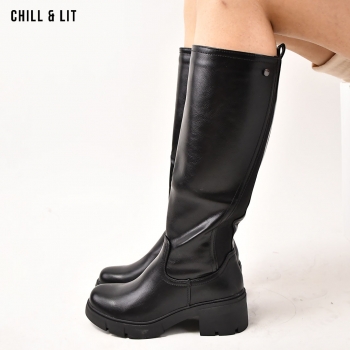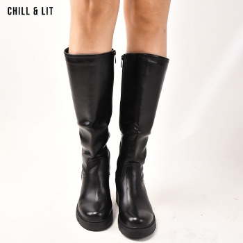 Bottes en Cuir pour Femme avec Doublure Ultra Chaude et Douce, Fermeture Glissière, Tige à Hauteur 43 Cm et Semelle Hauteur 6 Cm Tendance cet Hiver.  Pointure sur la photo : 36.