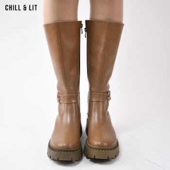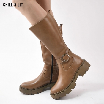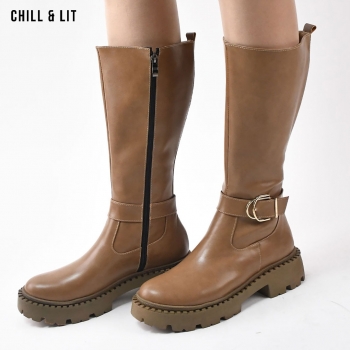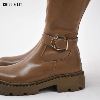 Bottes en Cuir pour Femme avec Doublure Ultra Chaude et Douce, Fermeture Glissière, Tige à Hauteur 34 Cm et Semelle Hauteur 4,5 Cm Tendance cet Hiver. Pointure sur la photo : 40.