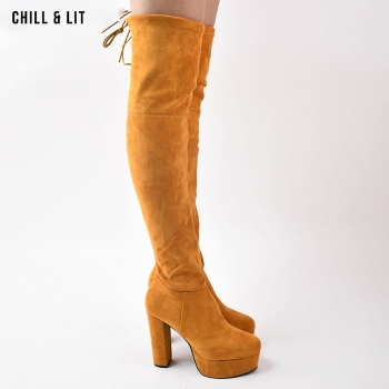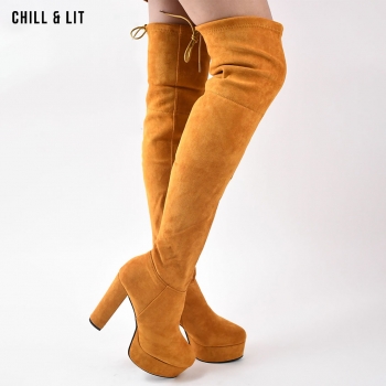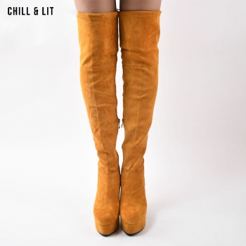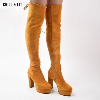 Bottes en Cuir pour Femme avec Doublure Ultra Chaude et Douce, Fermeture Glissière, Tige à Hauteur 58.5cm ,Hauteur du Talon 12cm et Semelle Hauteur 4cm Tendance cet Hiver. Pointure sur la photo : 36.