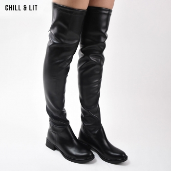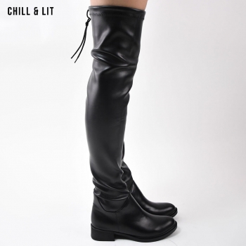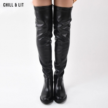 Bottes en Cuir pour Femme , Fermeture Glissière, Tige à Hauteur 66cm et Semelle Hauteur 3.5cm Tendance cet Hiver. Pointure sur la photo : 36.