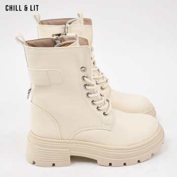 Bottines en Cuir pour Femme avec Doublure Ultra Chaude et Douce, Fermeture Glissière, Tige à Hauteur 16cm et Semelle Hauteur 5,5cm Tendance cet Hiver. Pointure sur la photo : 36.