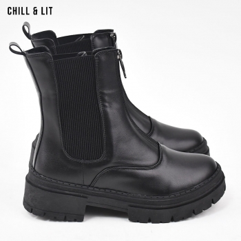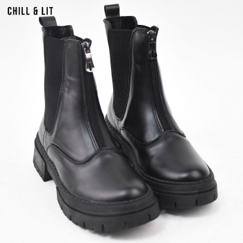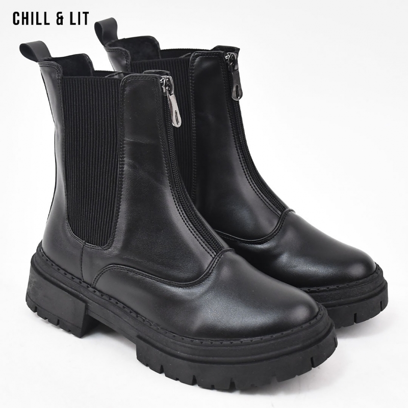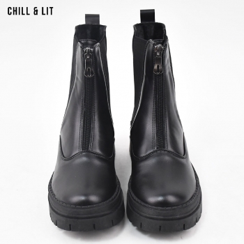 Bottines en Cuir pour Femme avec Doublure Ultra Chaude et Douce, Fermeture Glissière, Tige à Hauteur 15cm et Semelle Hauteur 5cm Tendance cet Hiver.  Pointure sur la photo : 36.