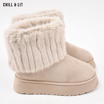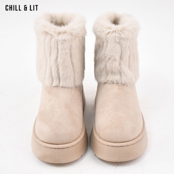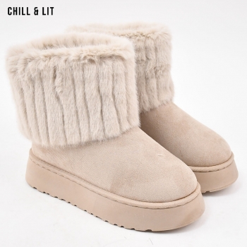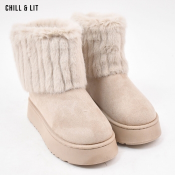 Bottines en Daim pour Femme avec Doublure Ultra Chaude et Douce, Tige à Hauteur 14cm et Semelle Hauteur 4,5cm Tendance cet Hiver.  Pointure sur la photo : 36.