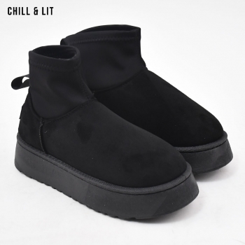 Bottines en Daim pour Femme avec Doublure Ultra Chaude et Douce, Tige à Hauteur 10.5cm et Semelle Hauteur 4,5cm Tendance cet Hiver.  Pointure sur la photo : 36.