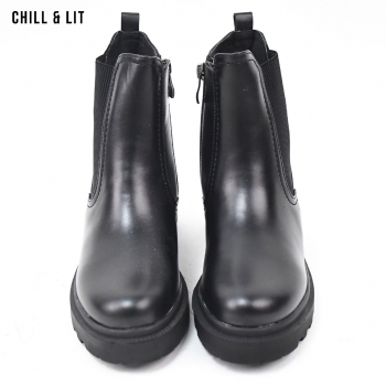 Bottes en Cuir pour Femme avec Doublure Ultra Chaude et Douce, Fermeture Glissière, Tige à Hauteur 13.5cm et Semelle Hauteur 5cm Tendance cet Hiver. Pointure sur la photo : 36.