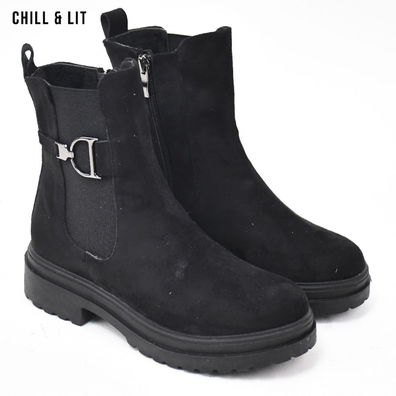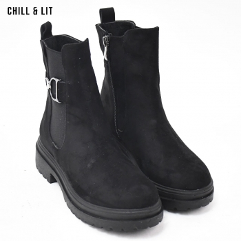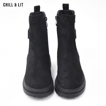 Bottes en Daim pour Femme avec Doublure Douce, Fermeture Glissière, Tige à Hauteur 14.5cm et Semelle Hauteur 4.5cm Tendance cet Hiver.  Pointure sur la photo : 36.
