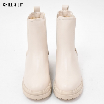 Bottes en Cuir pour Femme avec Doublure Ultra Chaude et Douce, Fermeture Glissière, Tige à Hauteur 15cm et Semelle Hauteur 4.5cm Tendance cet Hiver. Pointure sur la photo : 36.