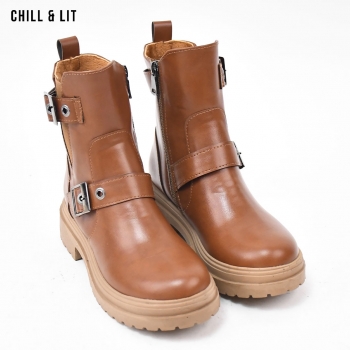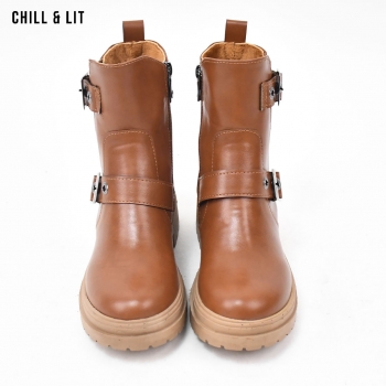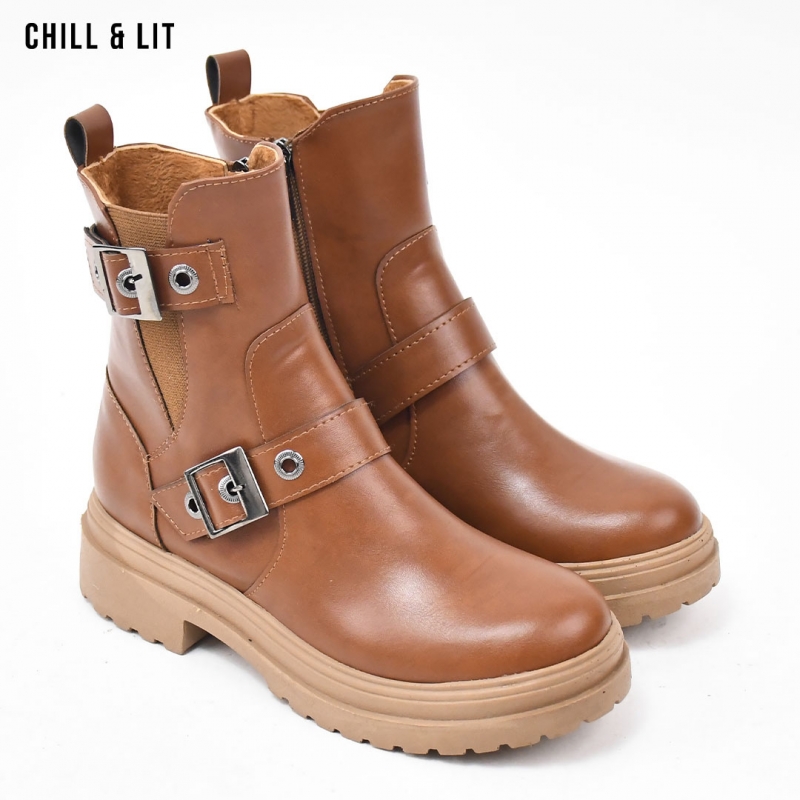 Bottes en Cuir pour Femme avec Doublure Douce, Fermeture Glissière, Tige à Hauteur 14.5cm et Semelle Hauteur 4.5cm Tendance cet Hiver.  Pointure sur la photo : 36.