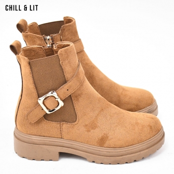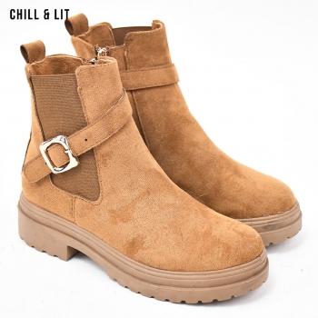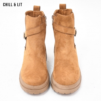 Bottes en Cuir pour Femme avec Doublure Ultra Chaude et Douce, Fermeture Glissière, Tige à Hauteur 12.5cm et Semelle Hauteur 4.5cm Tendance cet Hiver. Pointure sur la photo : 36.