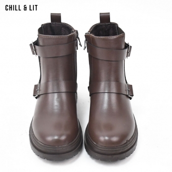 Bottes en Cuir pour Femme avec Doublure Ultra Chaude et Douce, Fermeture Glissière, Tige à Hauteur 11cm et Semelle Hauteur 4.5cm Tendance cet Hiver.  Pointure sur la photo : 36.