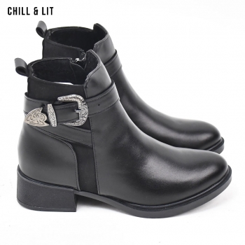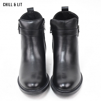 Bottes en Cuir pour Femme avec Doublure Douce, Fermeture Glissière, Tige à Hauteur 12cm et Semelle Hauteur 3.5cm Tendance cet Hiver.  Pointure sur la photo : 36.