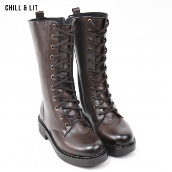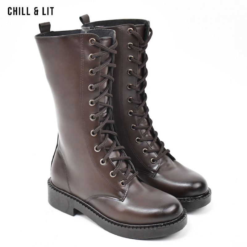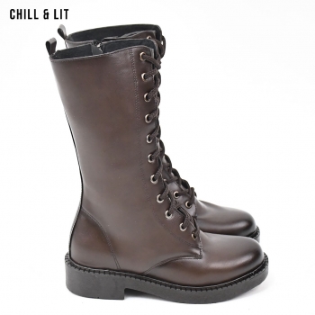 Bottes en Cuir pour Femme avec Doublure Douce, Fermeture Glissière, Tige à Hauteur 25cm et Semelle Hauteur 4cm Tendance cet Hiver. Pointure sur la photo : 36.