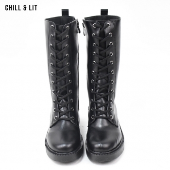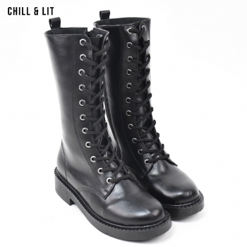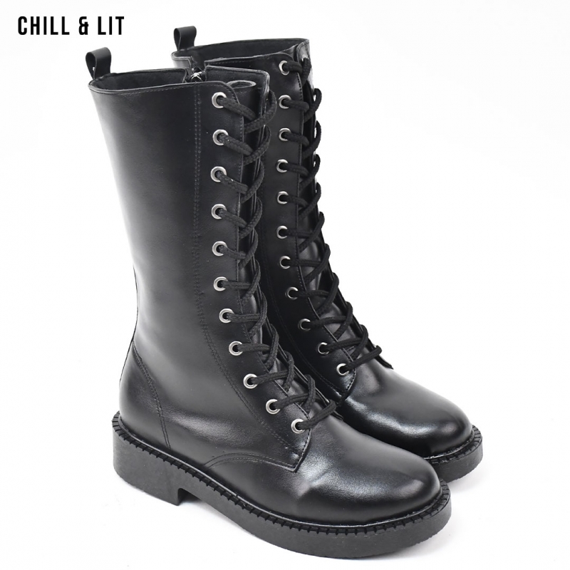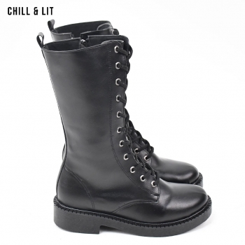 Bottes en Cuir pour Femme avec Doublure Douce, Fermeture Glissière, Tige à Hauteur 25cm et Semelle Hauteur 4cm Tendance cet Hiver.  Pointure sur la photo : 36.
