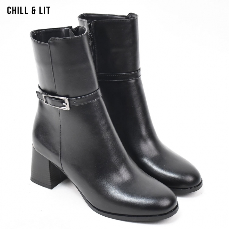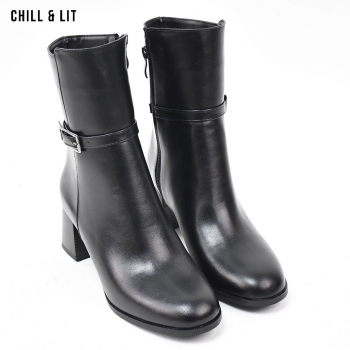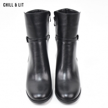 Bottes en Cuir pour Femme avec Doublure Ultra Chaude et Douce, Fermeture Glissière, Tige à Hauteur 17cm et Semelle Hauteur 6cm Tendance cet Hiver.  Pointure sur la photo : 36.