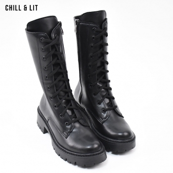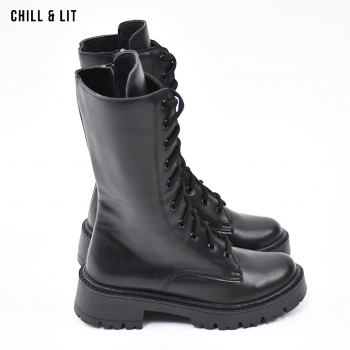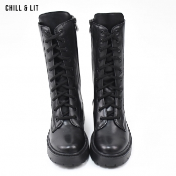 Bottes en Cuir pour Femme avec Doublure Douce, Fermeture Glissière, Tige à Hauteur 12cm et Semelle Hauteur 5cm Tendance cet Hiver. Pointure sur la photo : 37.