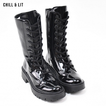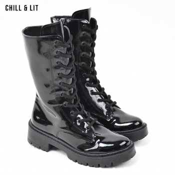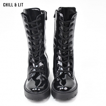 Bottes en Cuir pour Femme avec Doublure Douce, Fermeture Glissière, Tige à Hauteur 12cm et Semelle Hauteur 5cm Tendance cet Hiver.  Pointure sur la photo : 37.
