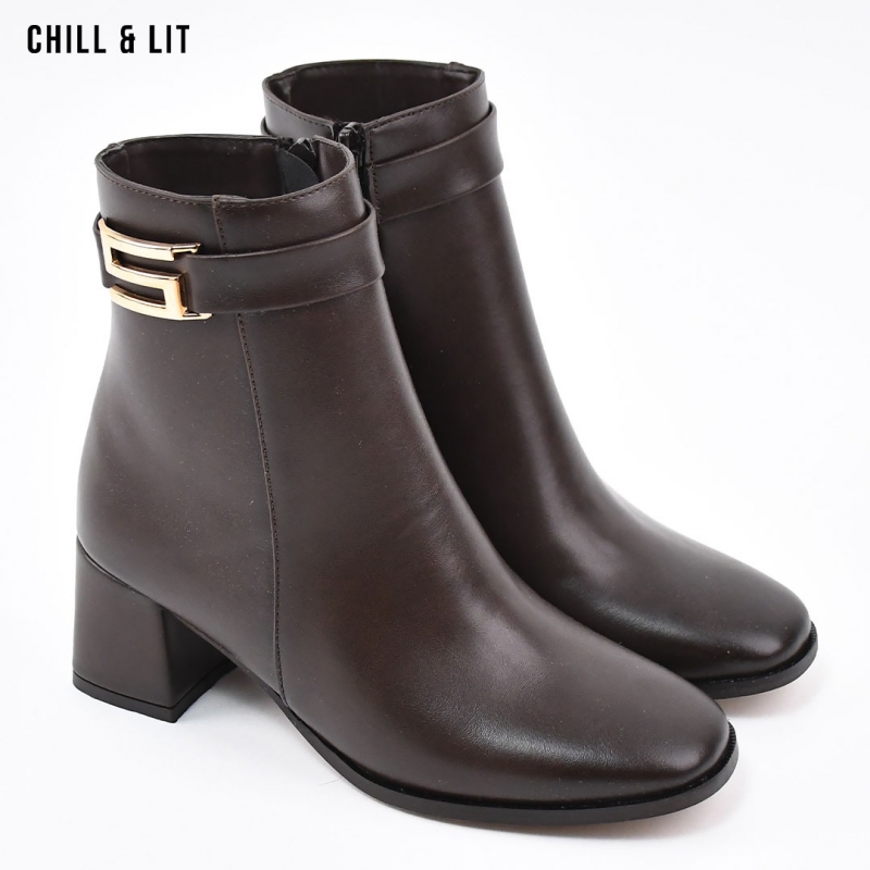 Des Bottines en Cuir avec Doublure Super Chaude et Douce Femme, Fermeture Glissière, Boucle En Acier Inoxydable et Semelle à Talon Hauteur 5.5 Cm Tendances cet Hiver. Pointure Dans la Photo:36.