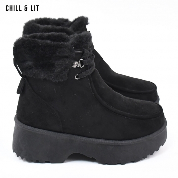 Bottines en Daim Femme avec Doublure Douce, Fermeture Glissière, Tige à Hauteur 12cm et Semelle Hauteur 5.5cm Tendance cet Hiver.  Pointure sur la photo : 37.