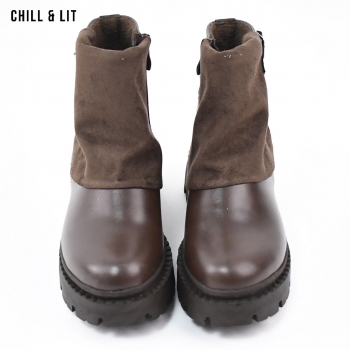 Bottines en Daim Femme avec Doublure Douce, Fermeture Glissière, Tige à Hauteur 13cm et Semelle Hauteur 4cm Tendance cet Hiver.  Pointure sur la photo : 37.