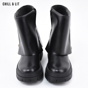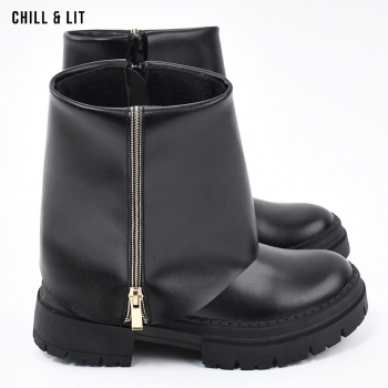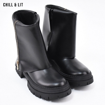 Bottines en Cuir Femme avec Doublure Douce, Fermeture Glissière, Tige à Hauteur 17cm et Semelle Hauteur 5.5cm Tendance cet Hiver. Pointure sur la photo : 37.