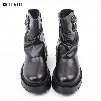 Bottes en Cuir pour Femme avec Doublure Douce, Fermeture Glissière, Tige à Hauteur 13cm et Semelle Hauteur 4.5cm Tendance cet Hiver.  Pointure sur la photo : 37.