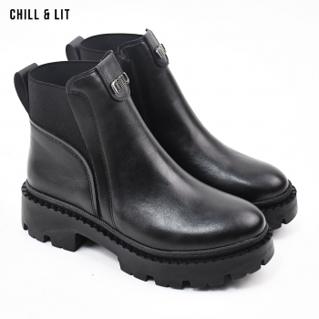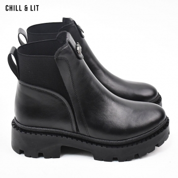 Bottes en Cuir pour Femme avec Doublure Douce, Tige à Hauteur 11.5cm et Semelle Hauteur 4cm Tendance cet Hiver.  Pointure sur la photo : 36.