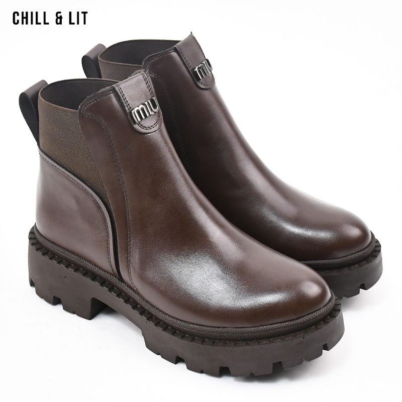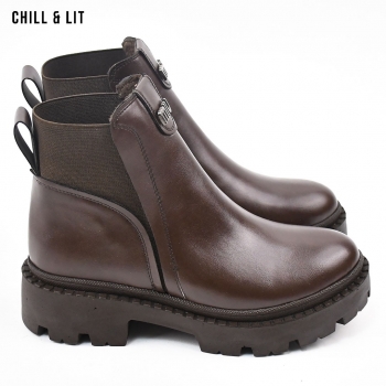 Bottes en Cuir pour Femme avec Doublure Douce, Tige à Hauteur 11.5cm et Semelle Hauteur 4cm Tendance cet Hiver. Pointure sur la photo : 36.