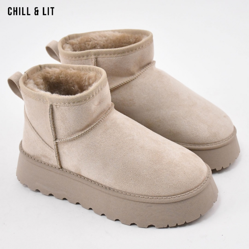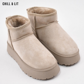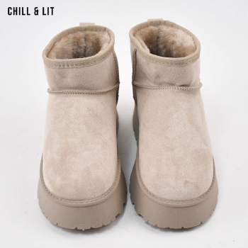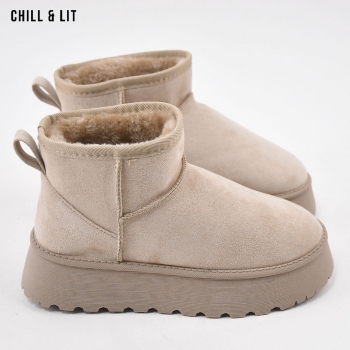 Bottines en Daim pour Femme avec Doublure Ultra Chaude et Douce, Tige à Hauteur 10cm et Semelle Hauteur 5cm Tendance cet Hiver.  Pointure sur la photo : 36.