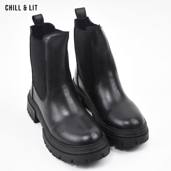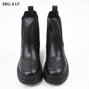 Bottes en Cuir pour Femme avec Doublure Douce, Tige à Hauteur 13cm et Semelle Hauteur 4cm Tendance cet Hiver. Pointure sur la photo : 36.