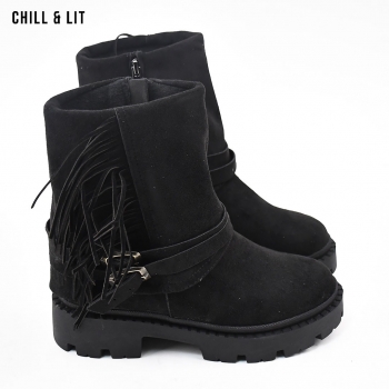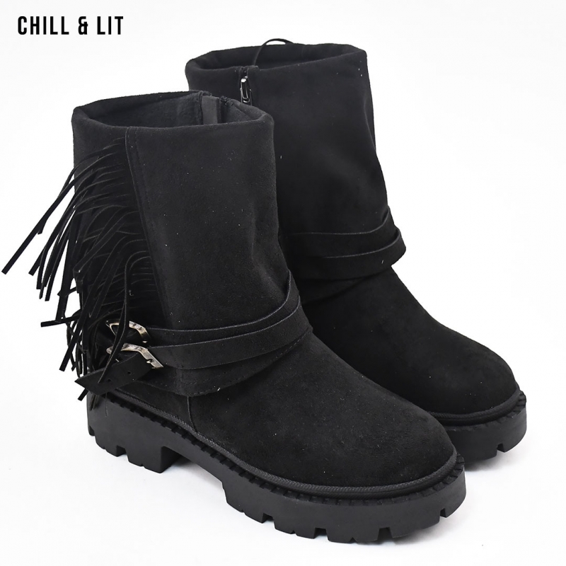 Bottes en Daim pour Femme avec Doublure Douce, Tige à Hauteur 17.5cm et Semelle Hauteur 4cm Tendance cet Hiver.  Pointure sur la photo : 36.