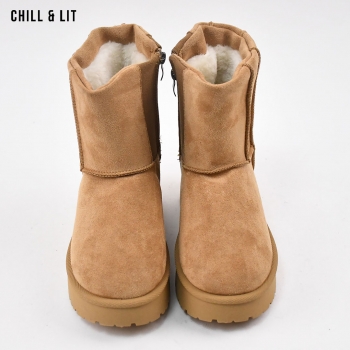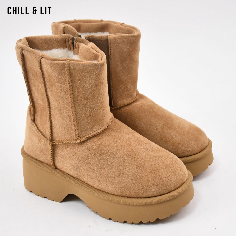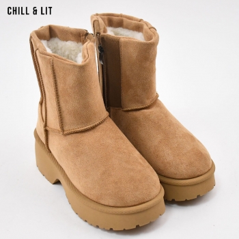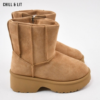 Bottines en Daim pour Femme avec Doublure Ultra Chaude et Douce, Tige à Hauteur 15.5cm et Semelle Hauteur 6cm Tendance cet Hiver.  Pointure sur la photo : 36.
