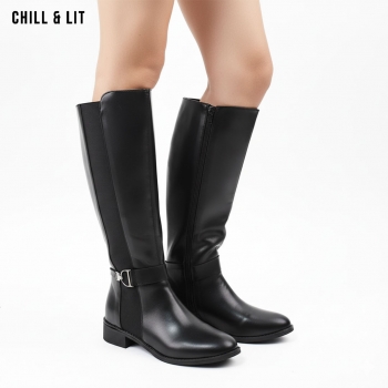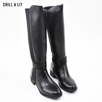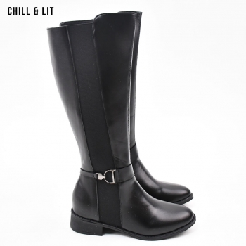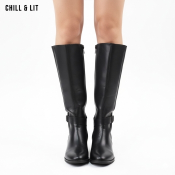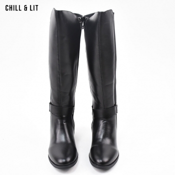 Bottes en Cuir pour Femme avec Doublure Douce, Tige à Hauteur 35cm et Semelle Hauteur 3.5cm Tendance cet Hiver.  Pointure sur la photo : 36.