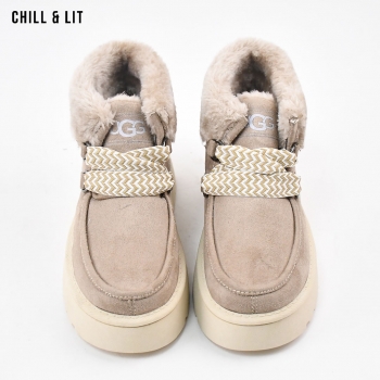 Bottines en Daim pour Femme avec Doublure Ultra Chaude et Douce, Tige à Hauteur 10cm et Semelle Hauteur 4cm Tendance cet Hiver. Pointure sur la photo : 36.