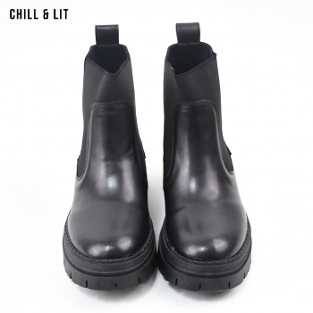Bottes en Cuir pour Femme avec Doublure Douce, Tige à Hauteur 12.5cm et Semelle Hauteur 3.5cm Tendance cet Hiver.  Pointure sur la photo : 36.