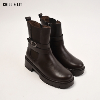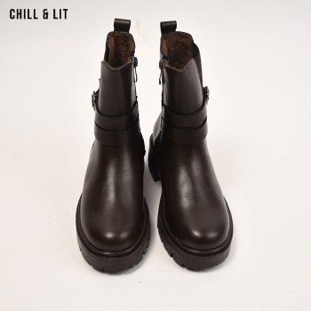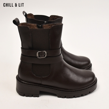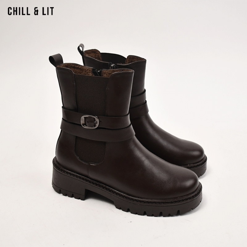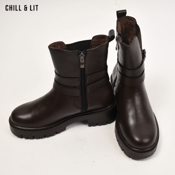 Bottines en Cuir Femme avec Doublure Douce, Fermeture Glissière, Tige à Hauteur 16cm et Semelle Hauteur 5cm Tendance cet Hiver. Pointure sur la photo : 36.
