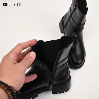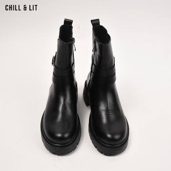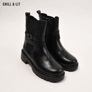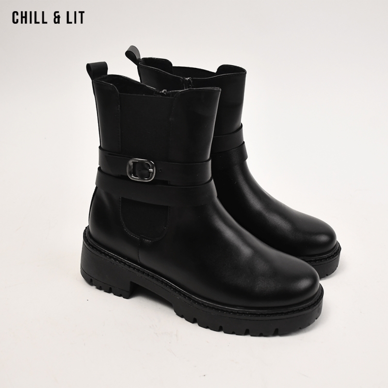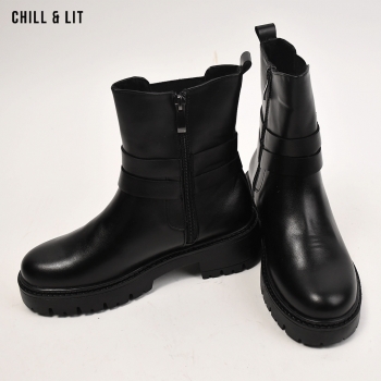 Bottines en Cuir Femme avec Doublure Douce, Fermeture Glissière, Tige à Hauteur 16cm et Semelle Hauteur 5cm Tendance cet Hiver.  Pointure sur la photo : 36.