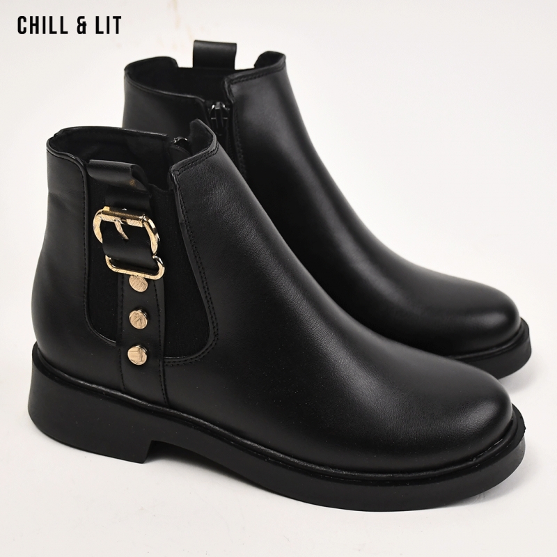 Bottines en Cuir Femme avec Doublure Douce, Fermeture Glissière, Tige à Hauteur 12cm et Semelle Hauteur 3.5cm Tendance cet Hiver.  Pointure sur la photo : 37.