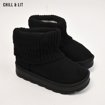 Bottines en Daim pour Femme avec Doublure Ultra Chaude et Douce, Tige à Hauteur 11cm et Semelle Hauteur 4.5cm Tendance cet Hiver.  Pointure sur la photo : 37.