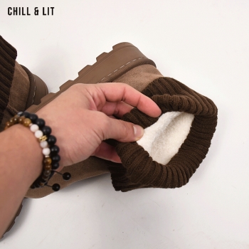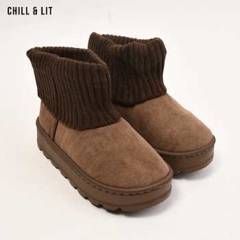 Bottines en Daim pour Femme avec Doublure Ultra Chaude et Douce, Tige à Hauteur 11cm et Semelle Hauteur 4.5cm Tendance cet Hiver.  Pointure sur la photo : 37.