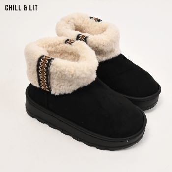 Bottines en Daim pour Femme avec Doublure Ultra Chaude et Douce, Tige à Hauteur 10cm et Semelle Hauteur 4.5cm Tendance cet Hiver.  Pointure sur la photo : 38.